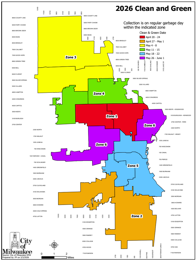 La Ciudad de Milwaukee ha lanzado oficialmente su sexto Distrito anual del Proyecto Limpio y Verde 2026, una iniciativa a nivel de ciudad destinada a ayudar a los residentes a deshacerse de artÃculos domésticos no deseados y mejorar la limpieza de los vecindarios. El programa se llevará a cabo del 20 de abril al 1 de junio de 2026, y ofrece recolección en la acera y ajustes por dÃas festivos debido al DÃa de los CaÃdos.